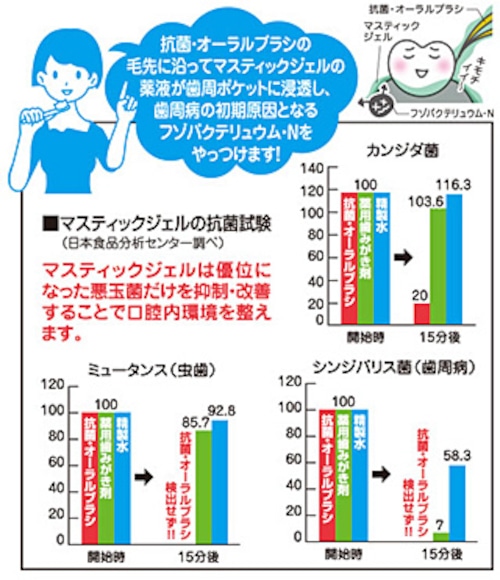 悪玉菌が増殖して悪さを始めるきっかけとなるフゾバクテリュウム・Nという菌を、マスティックジェルの薬液が歯周ポケットに浸透し、殺菌してくれます。